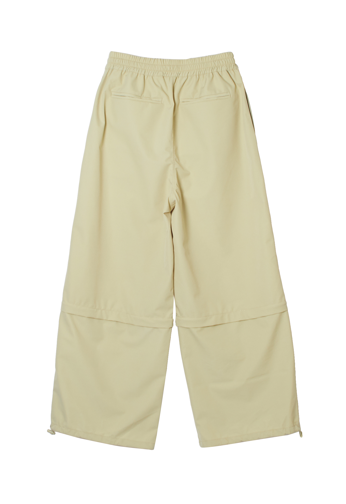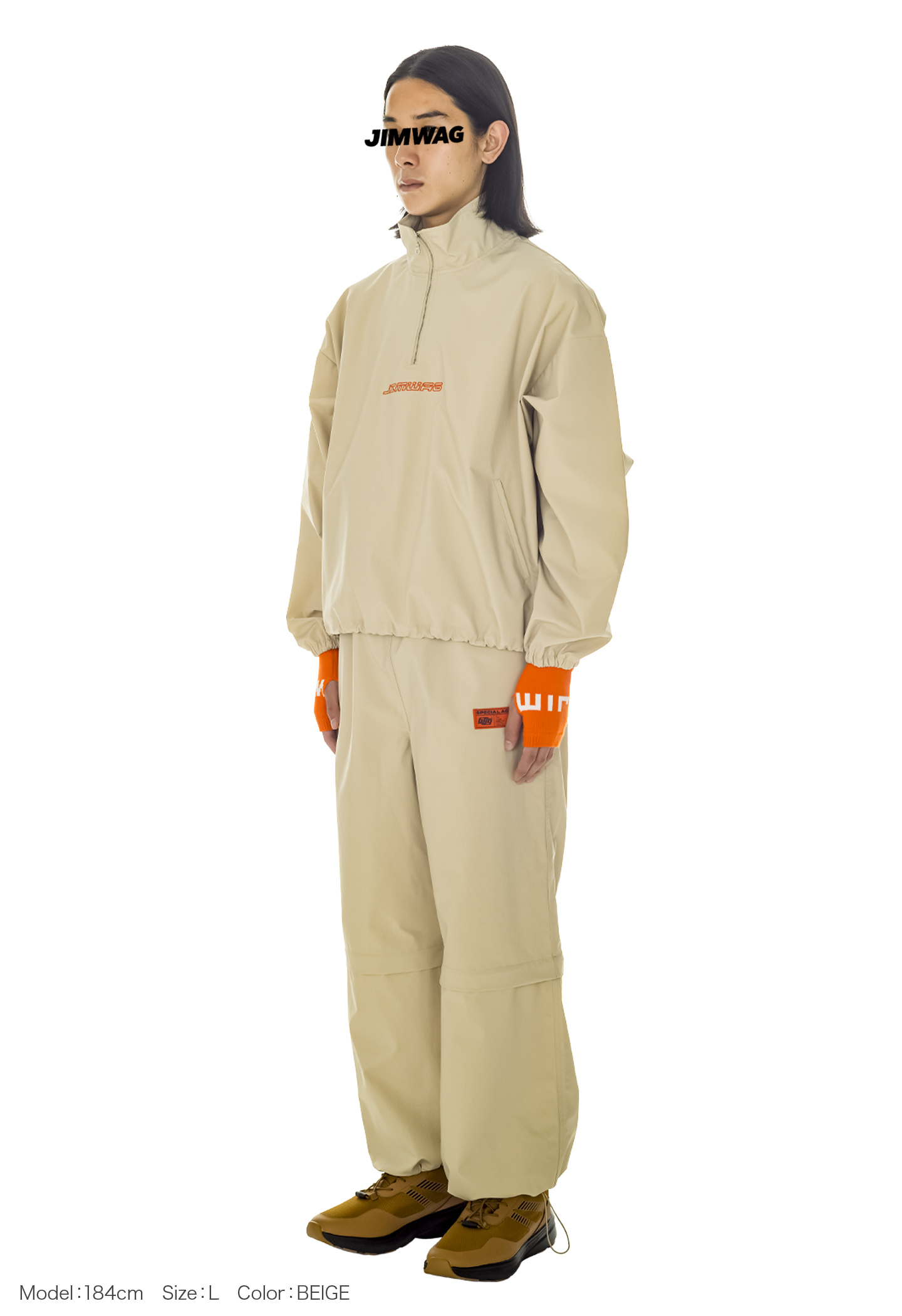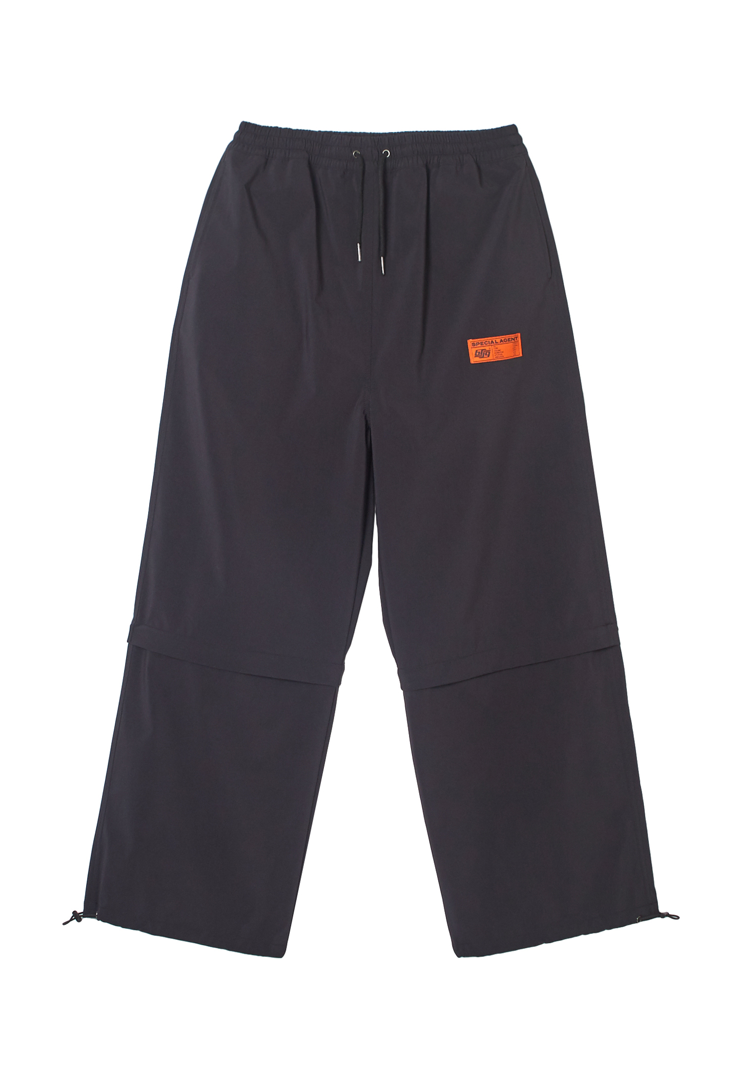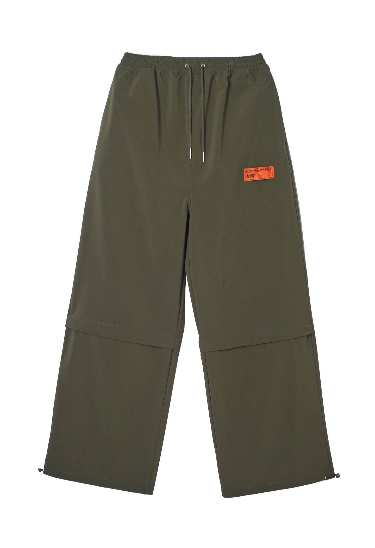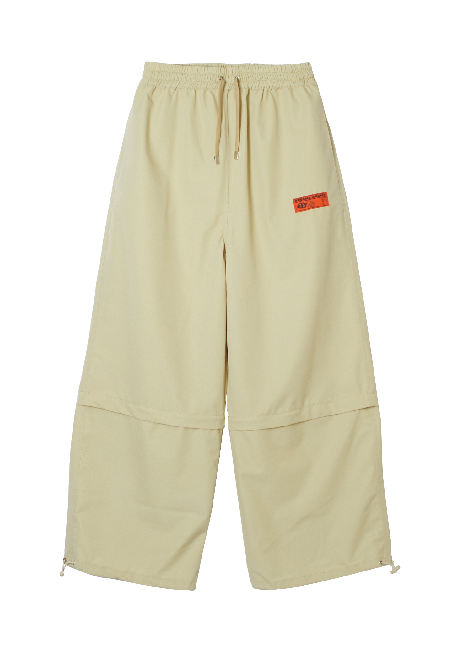 ファスナーで、フルレングスとハーフパンツにも使える2WAY仕様もポイント。シーズンレスで使えるアイテムです。裾にはドロストコードが付いているので、自分にあったシルエットで着用できます。メンズライクなオーバーサイズです。オリジナルのネームも入ったデザインです。