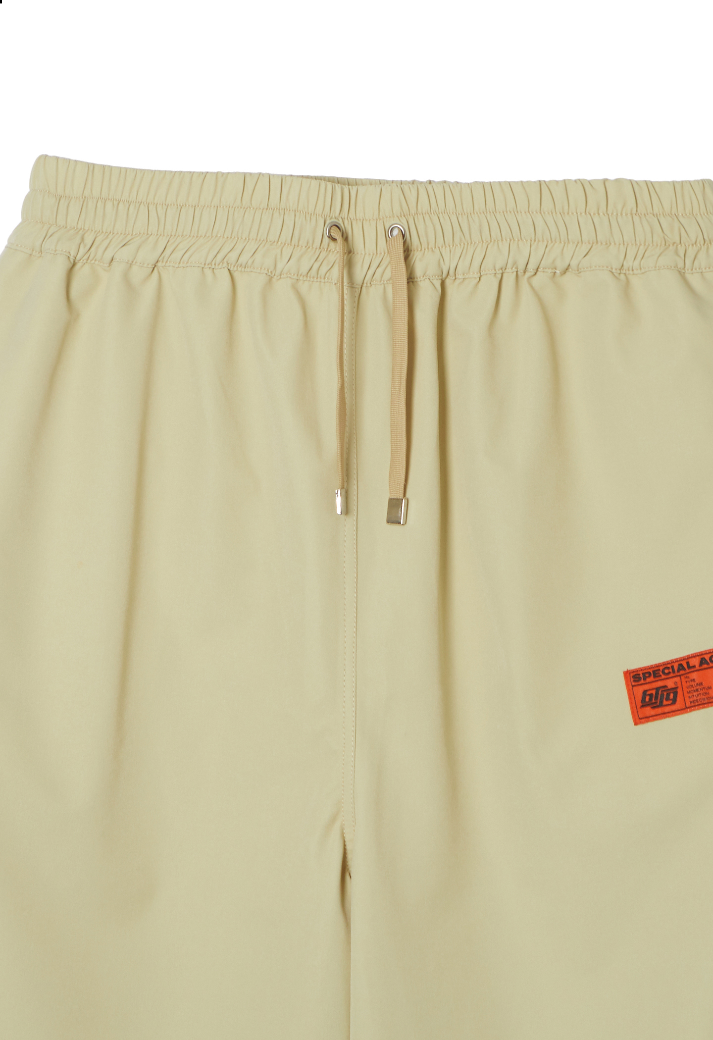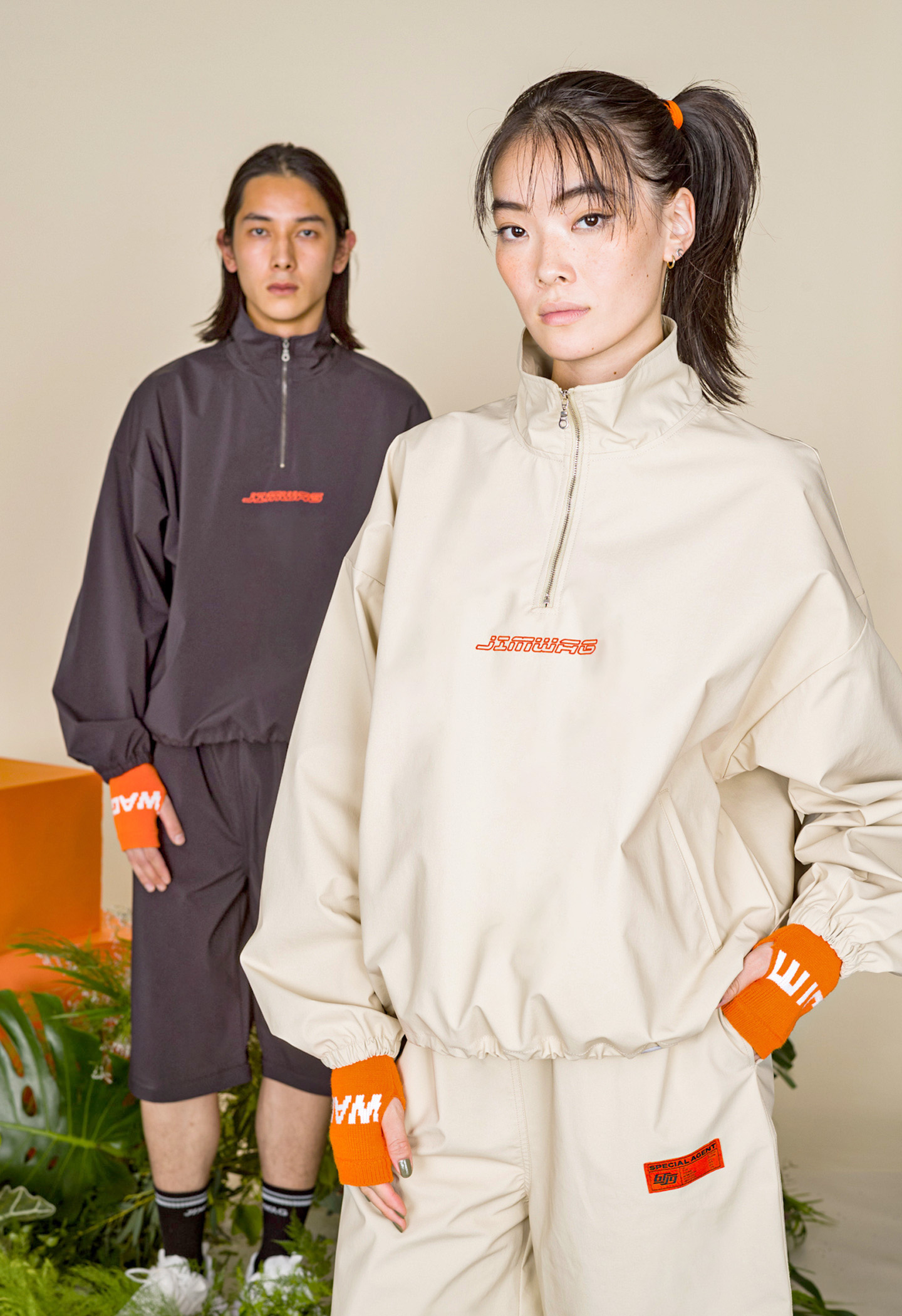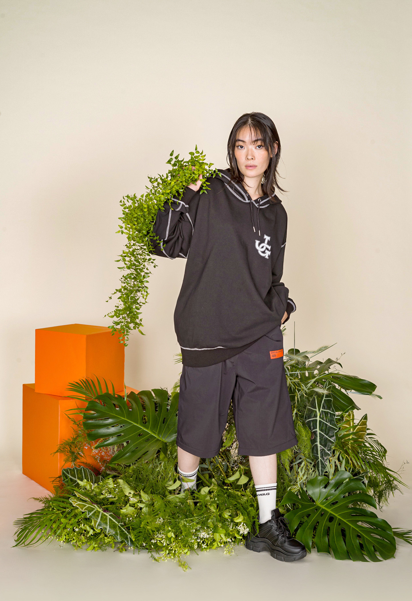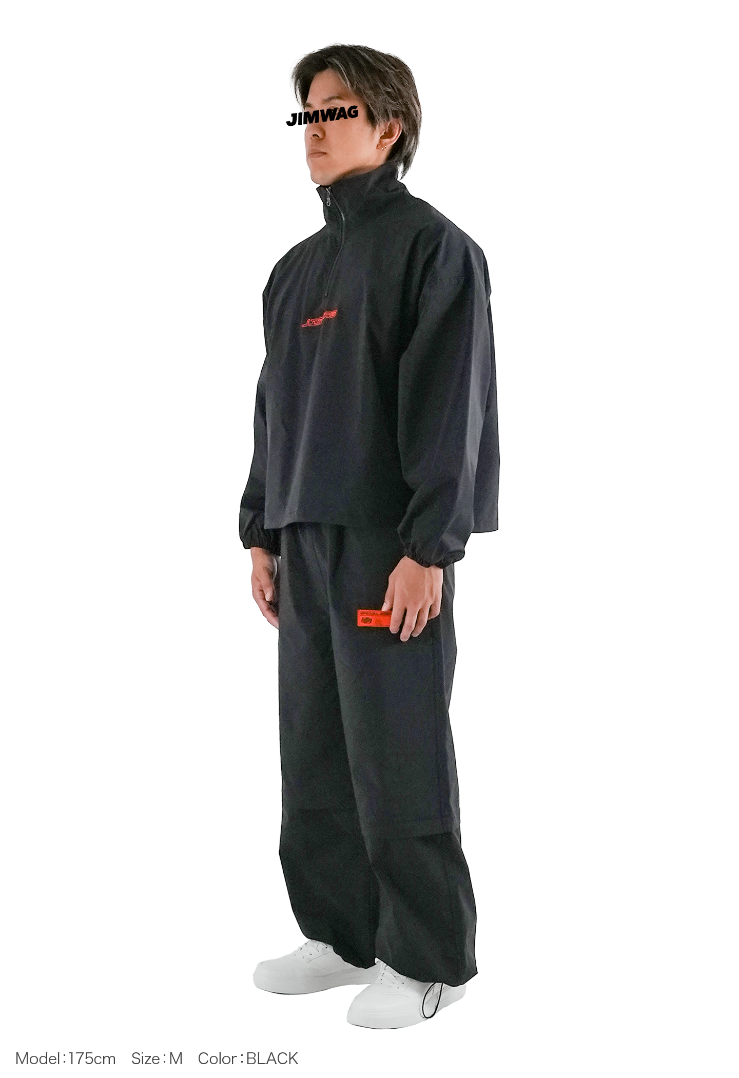 ファスナーで、フルレングスとハーフパンツにも使える2WAY仕様もポイント。シーズンレスで使えるアイテムです。裾にはドロストコードが付いているので、自分にあったシルエットで着用できます。メンズライクなオーバーサイズです。オリジナルのネームも入ったデザインです。