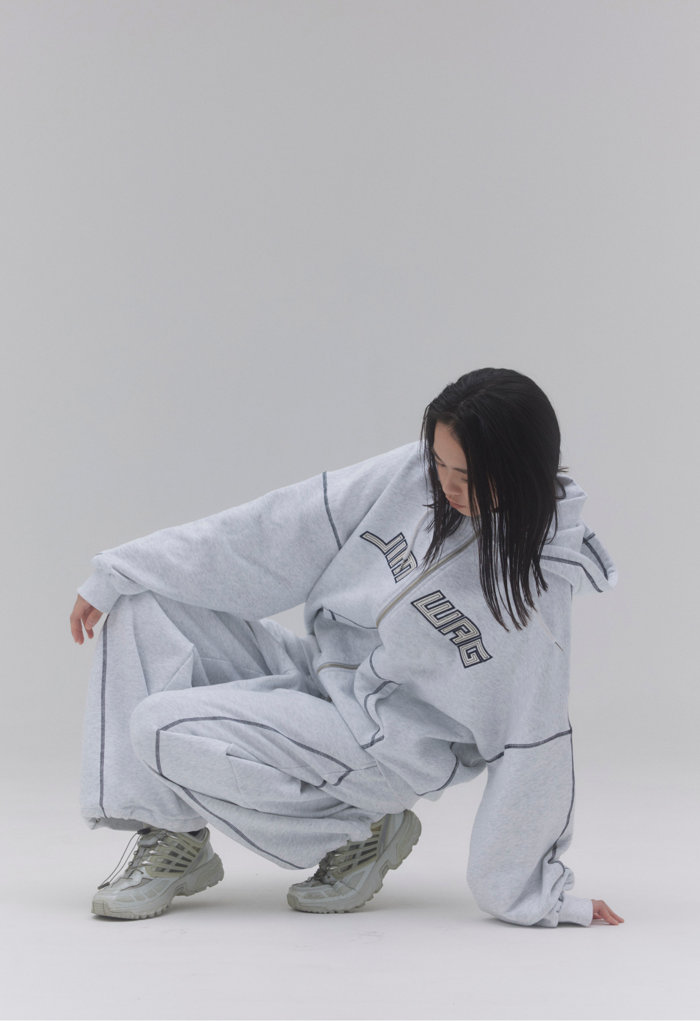 Stitch line sweat pants set up