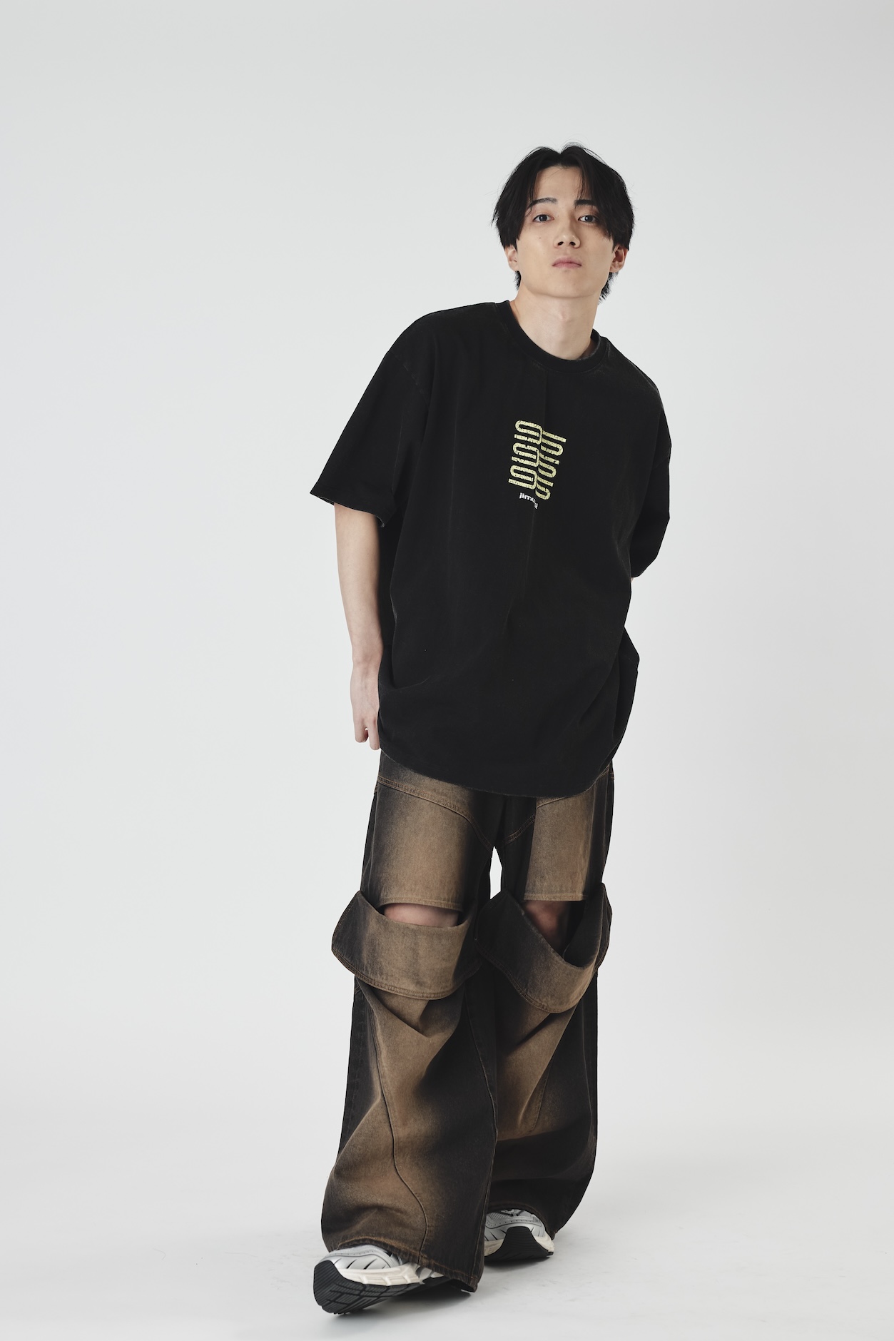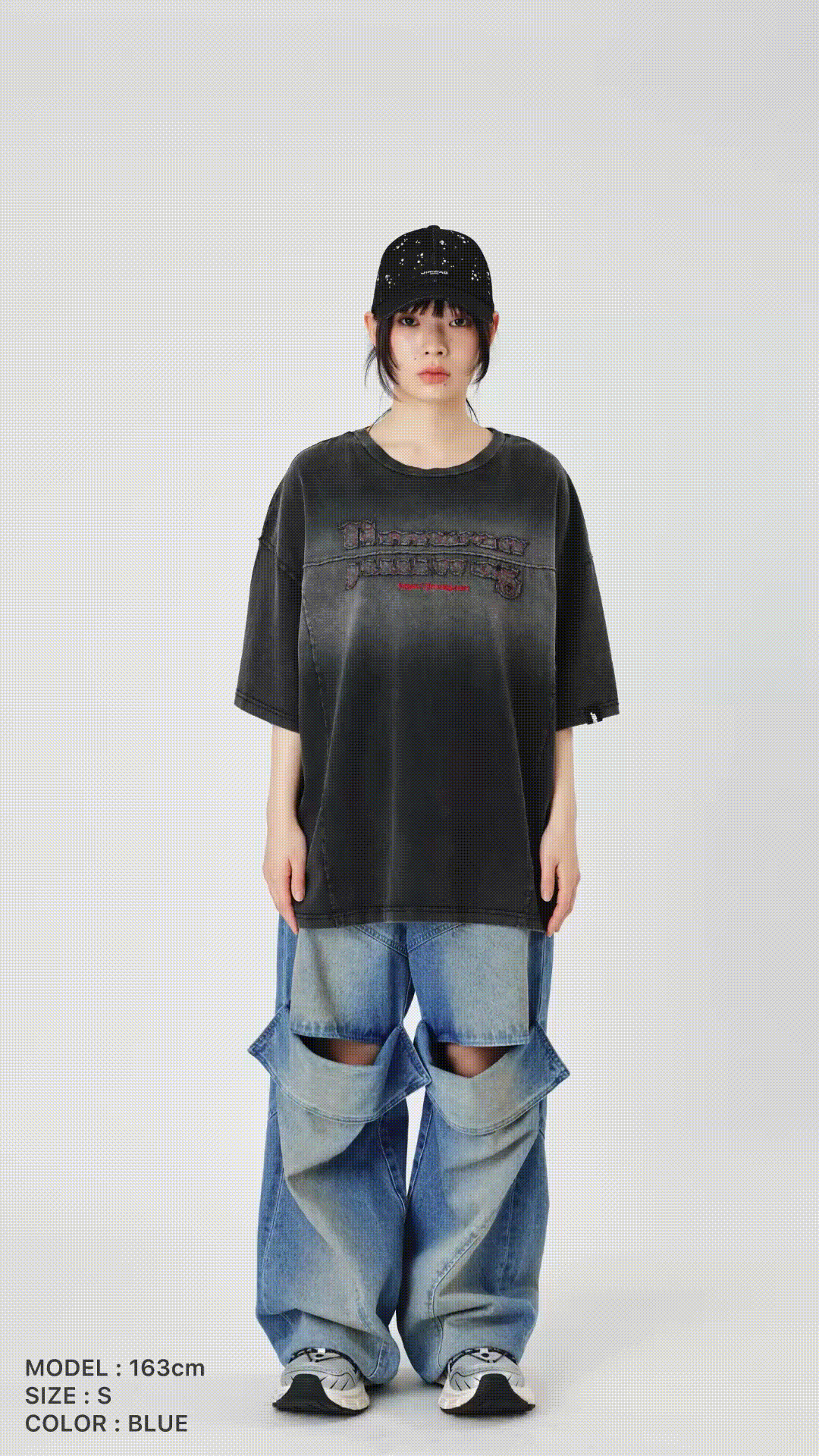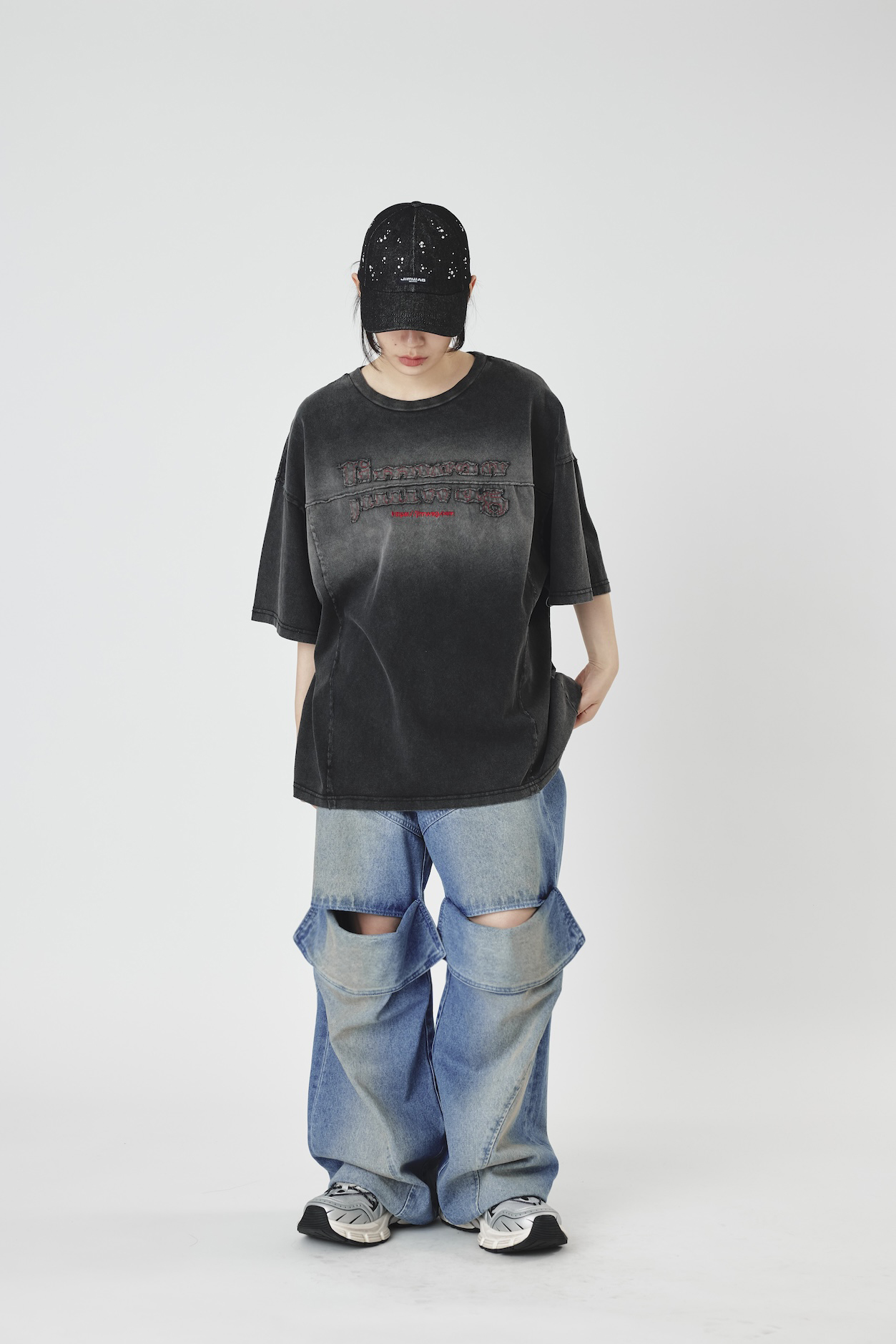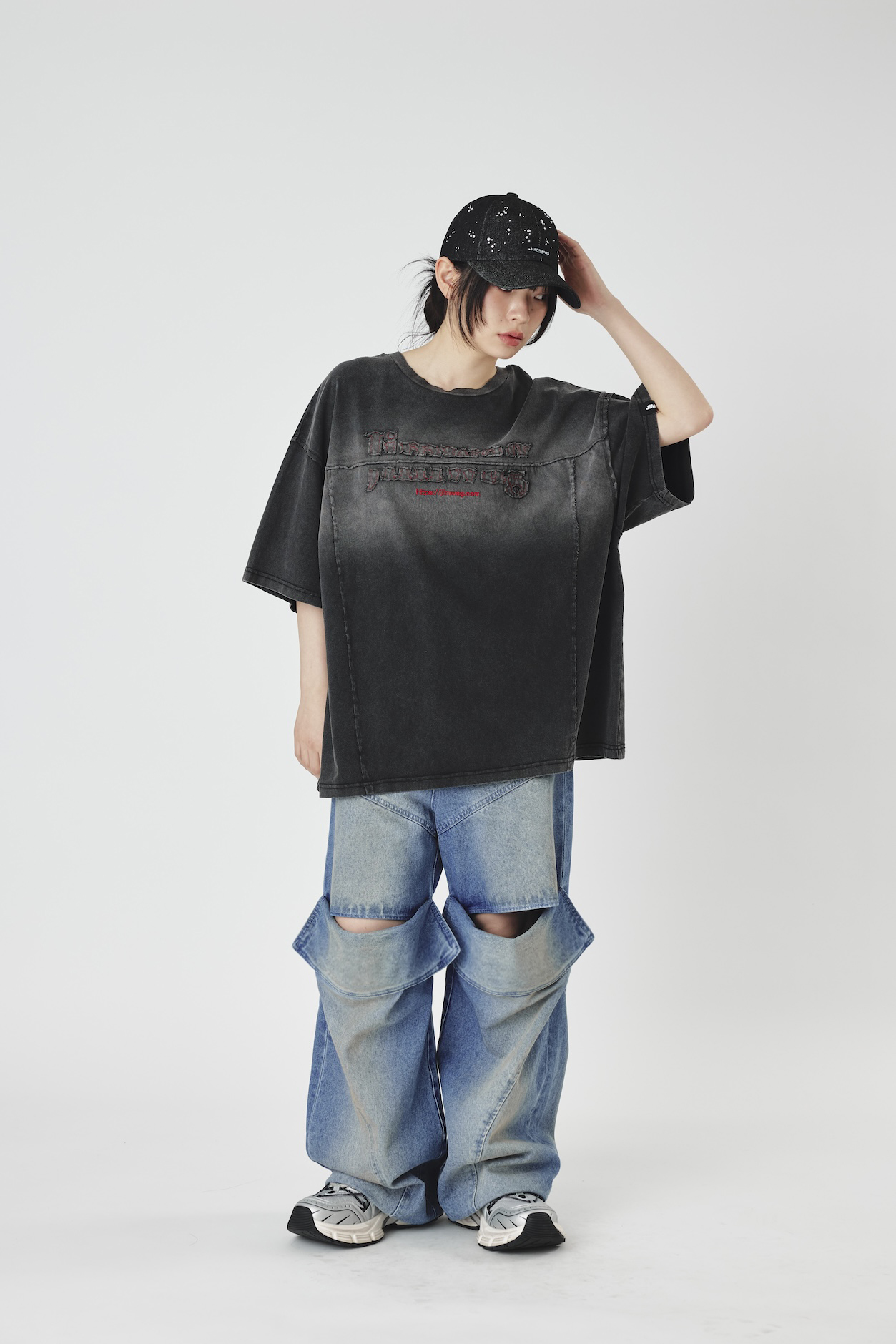 Slit lose denim pants