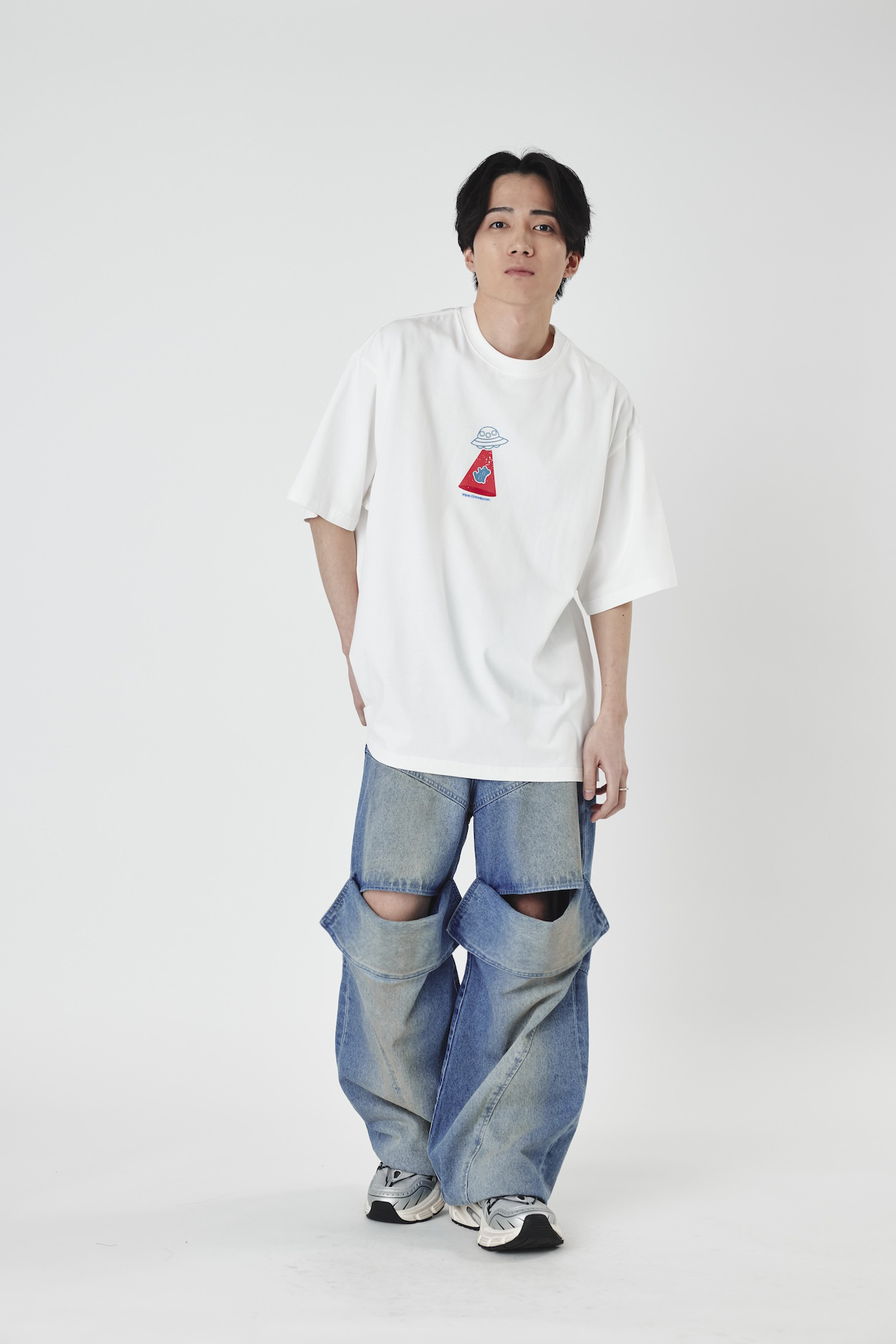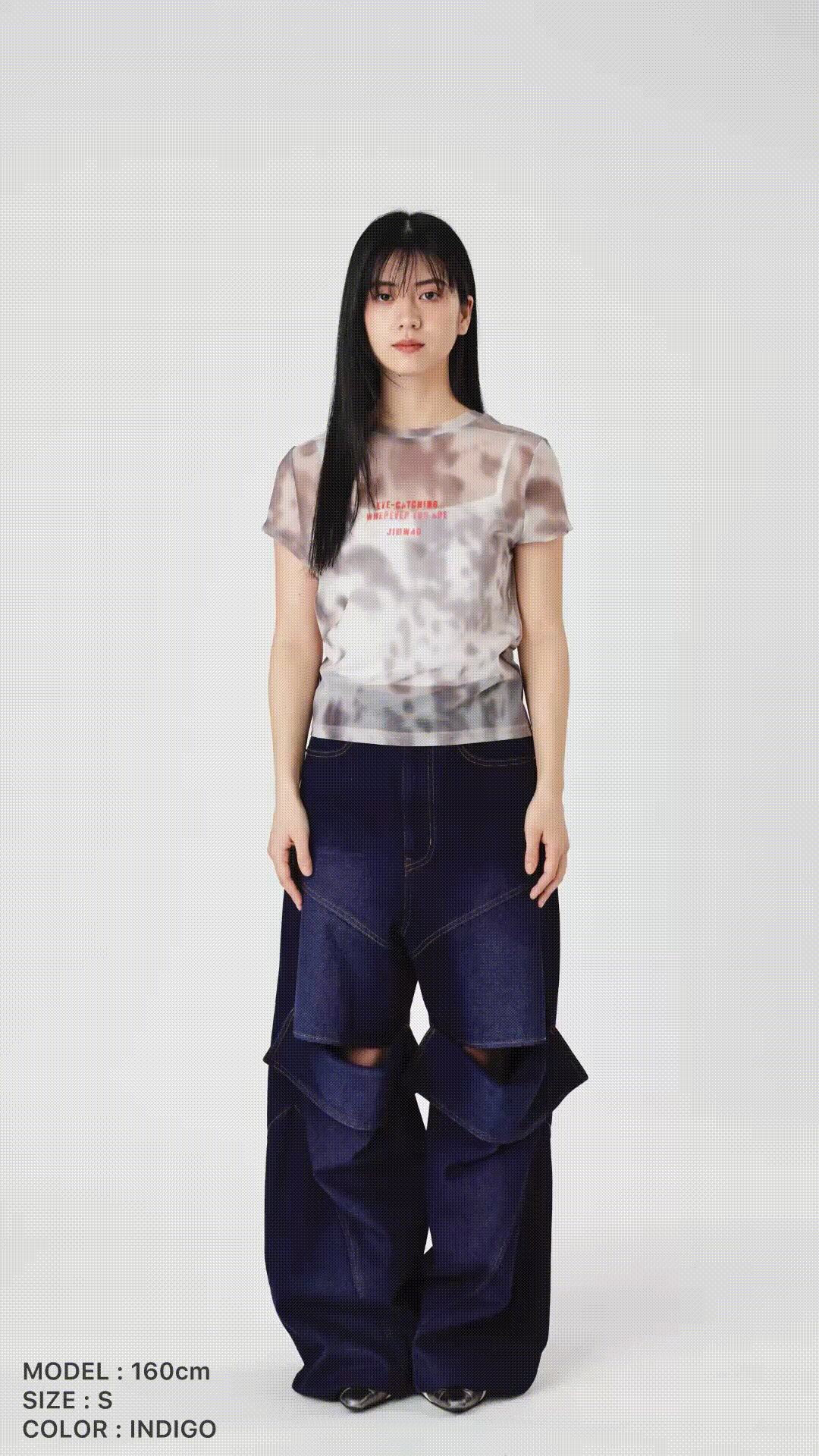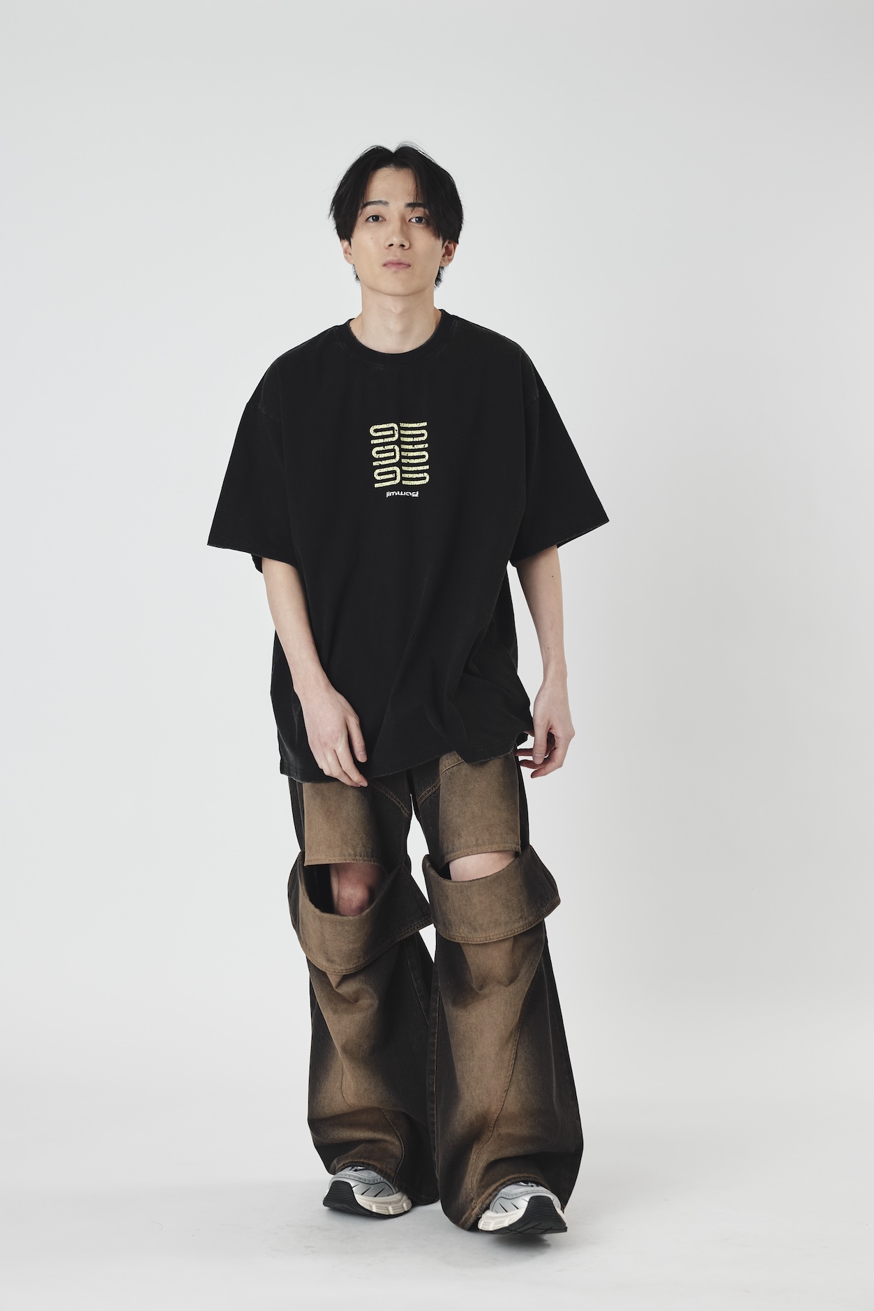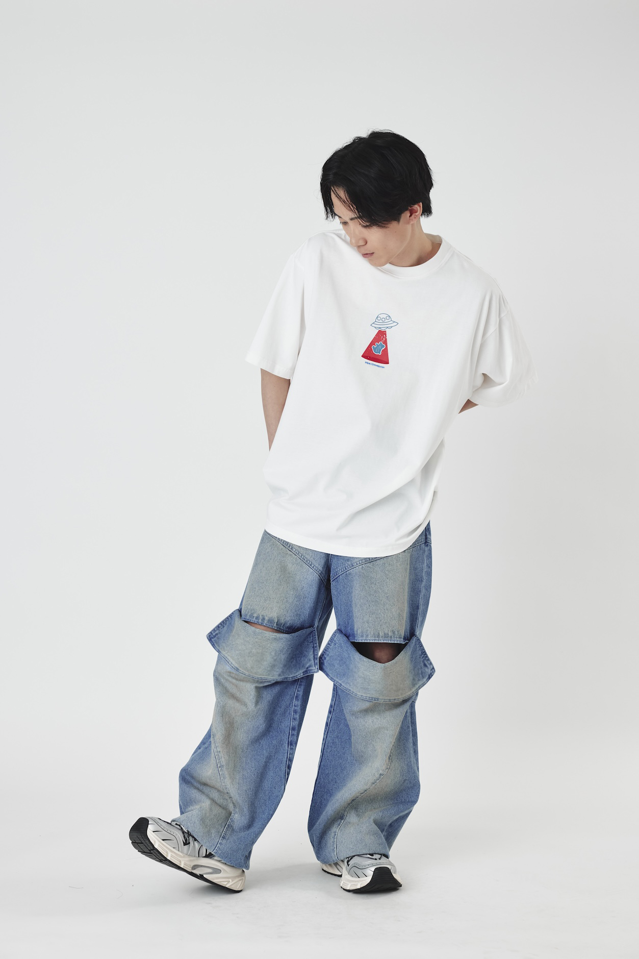 Slit lose denim pants