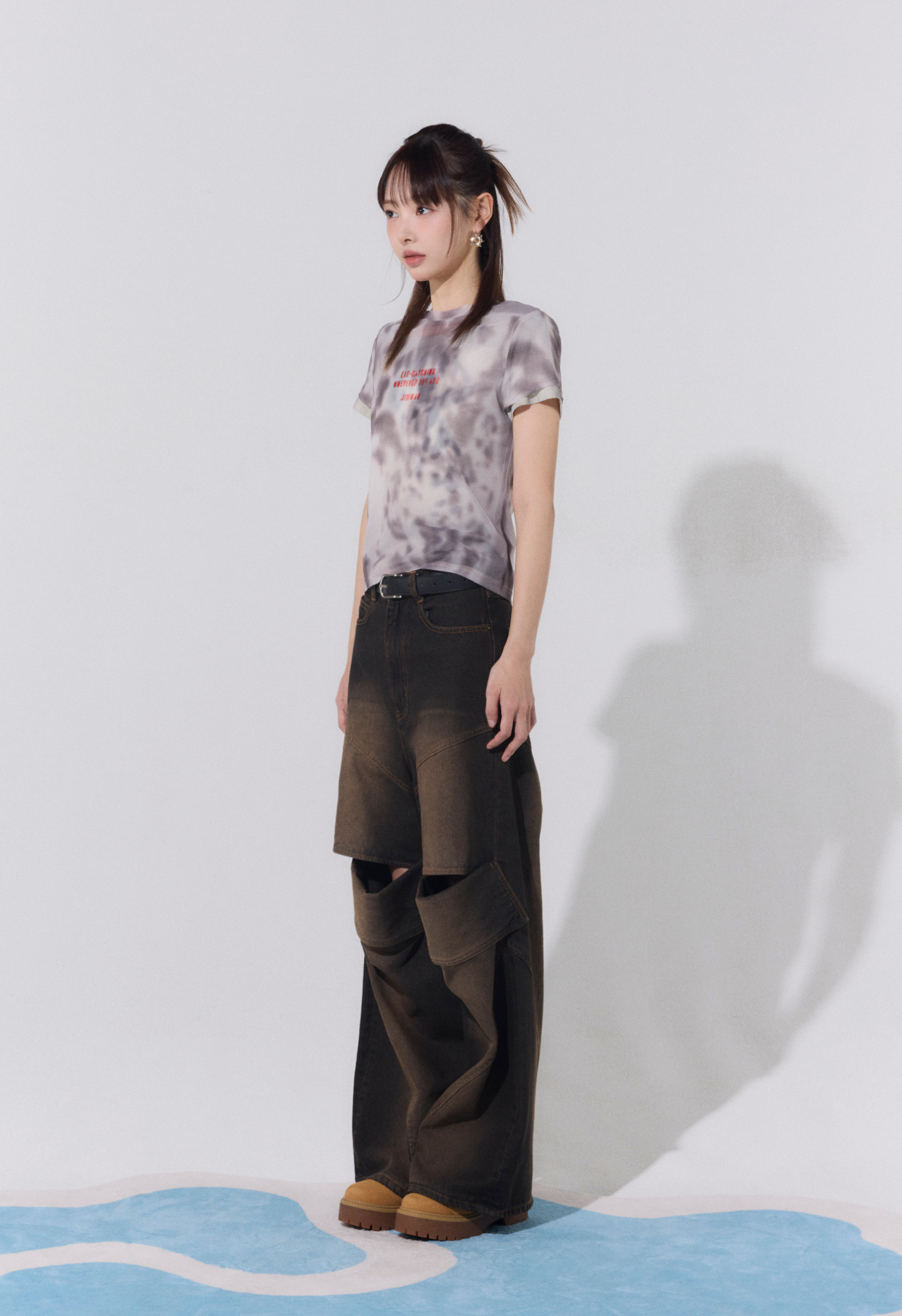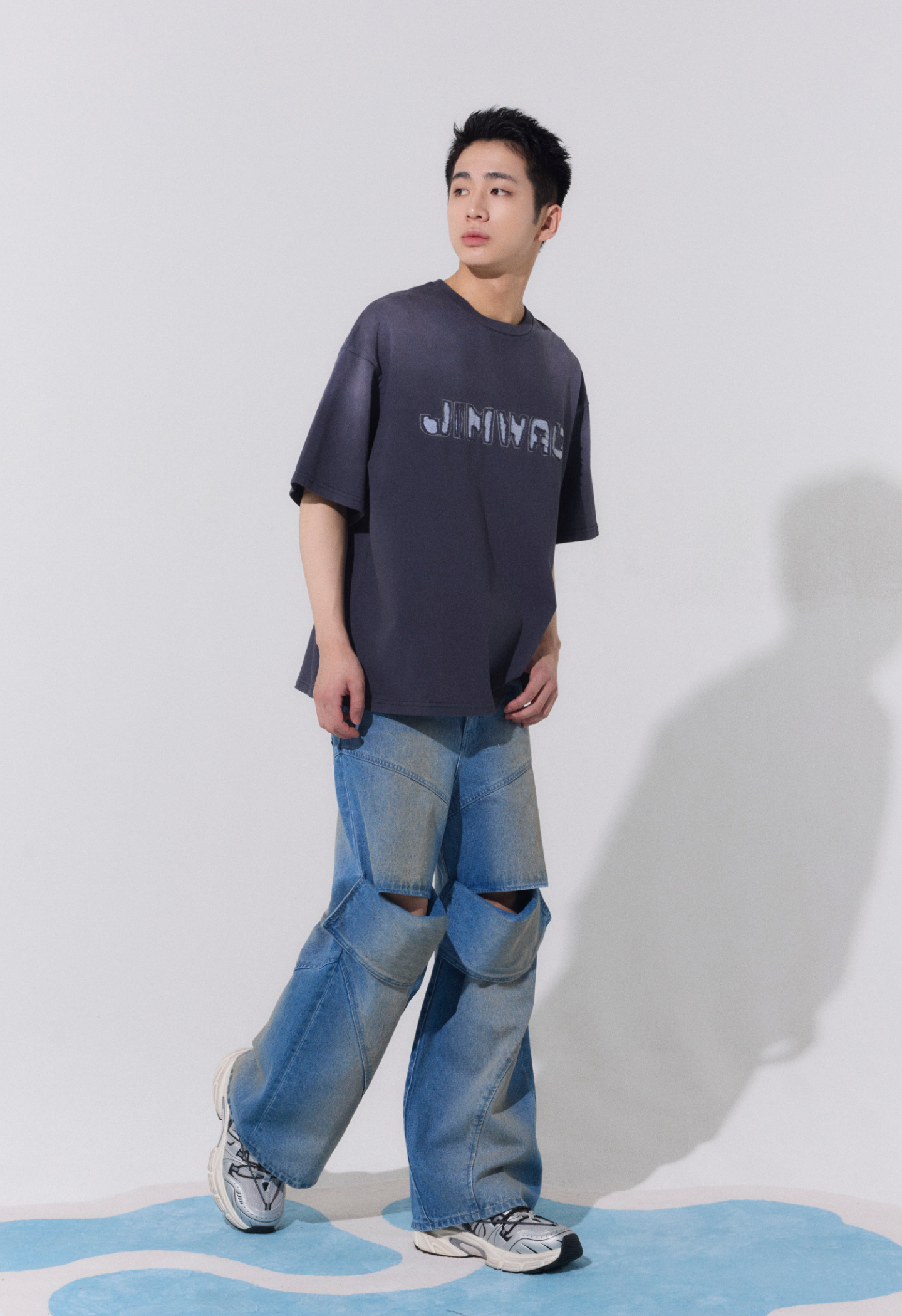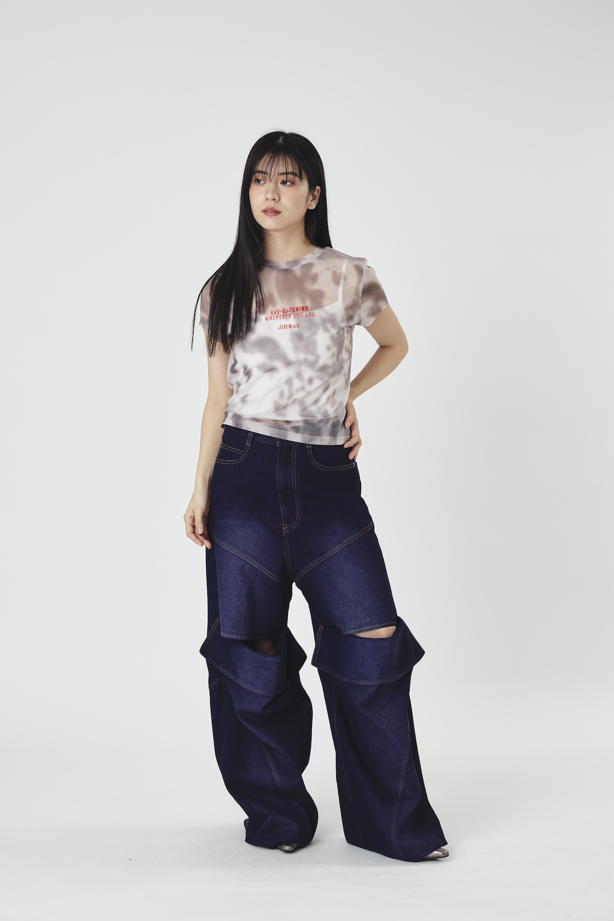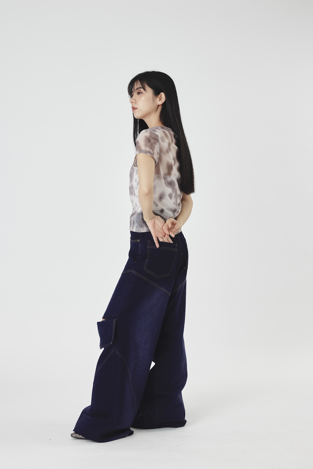 Slit lose denim pants