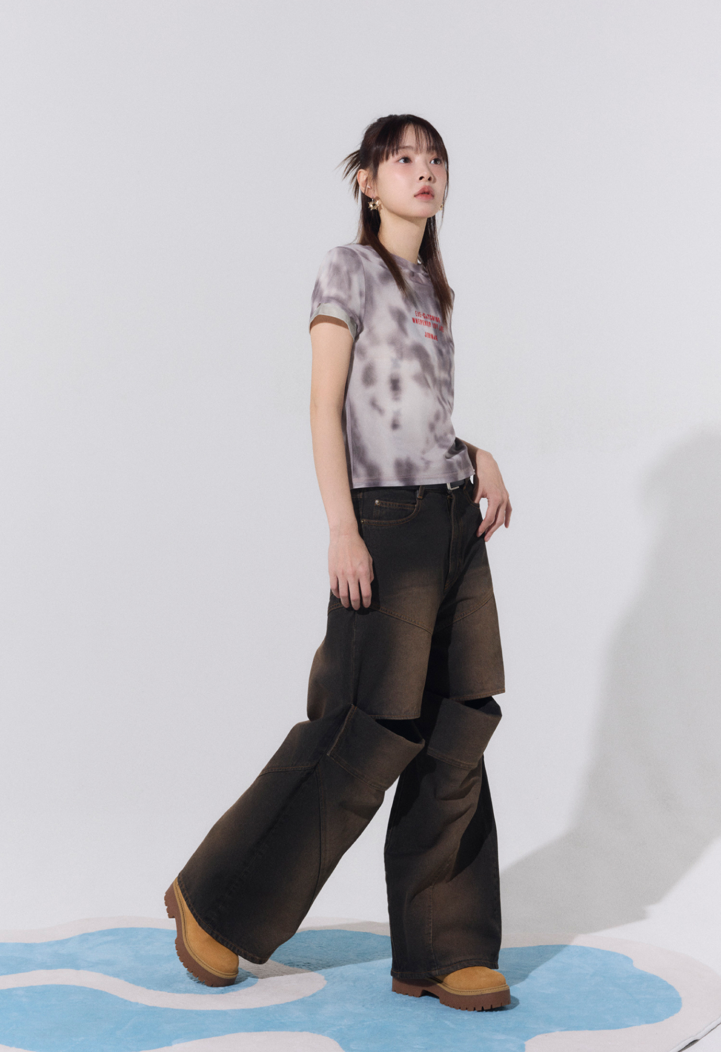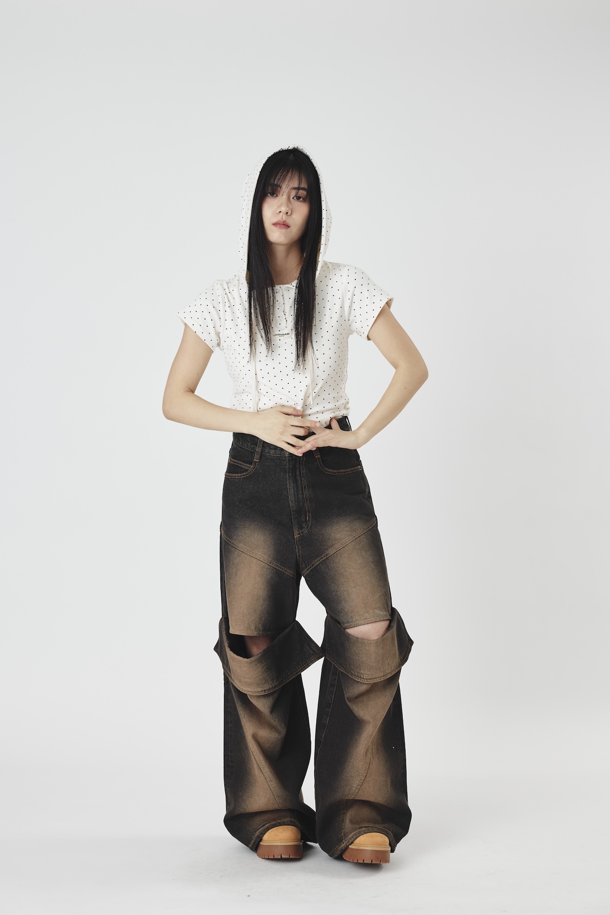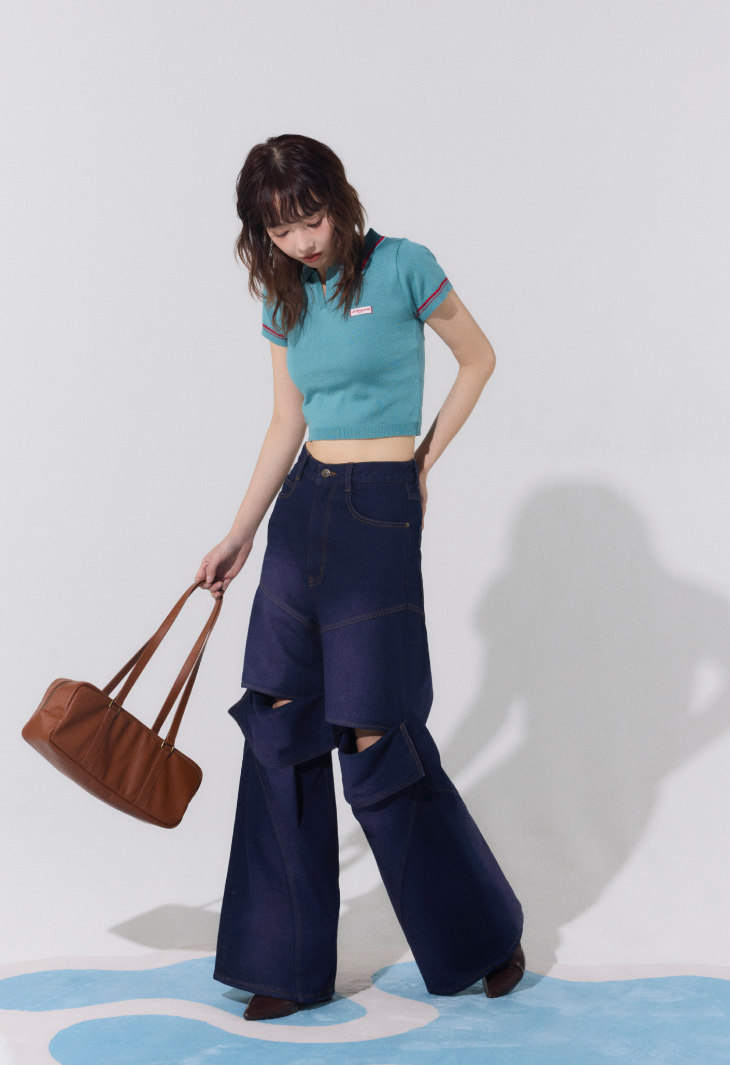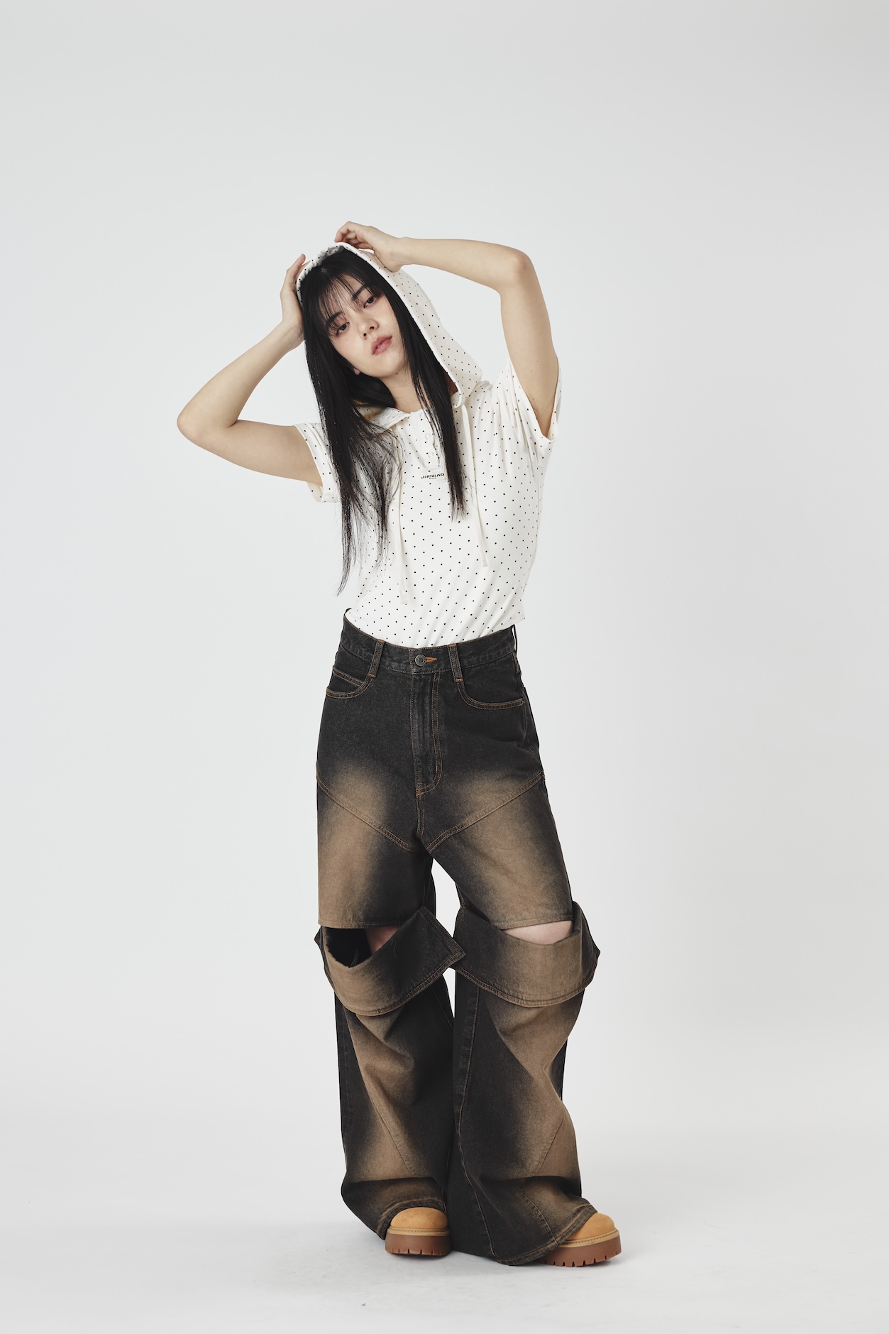 Slit lose denim pants